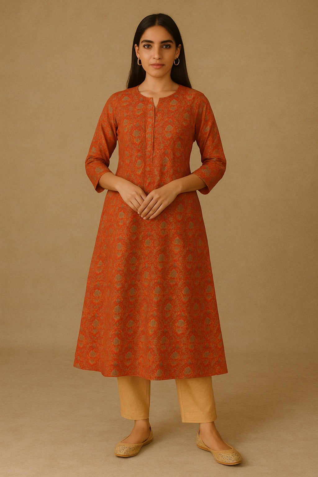Black and Rust Red Floral Hand Block Printed Cotton Saree