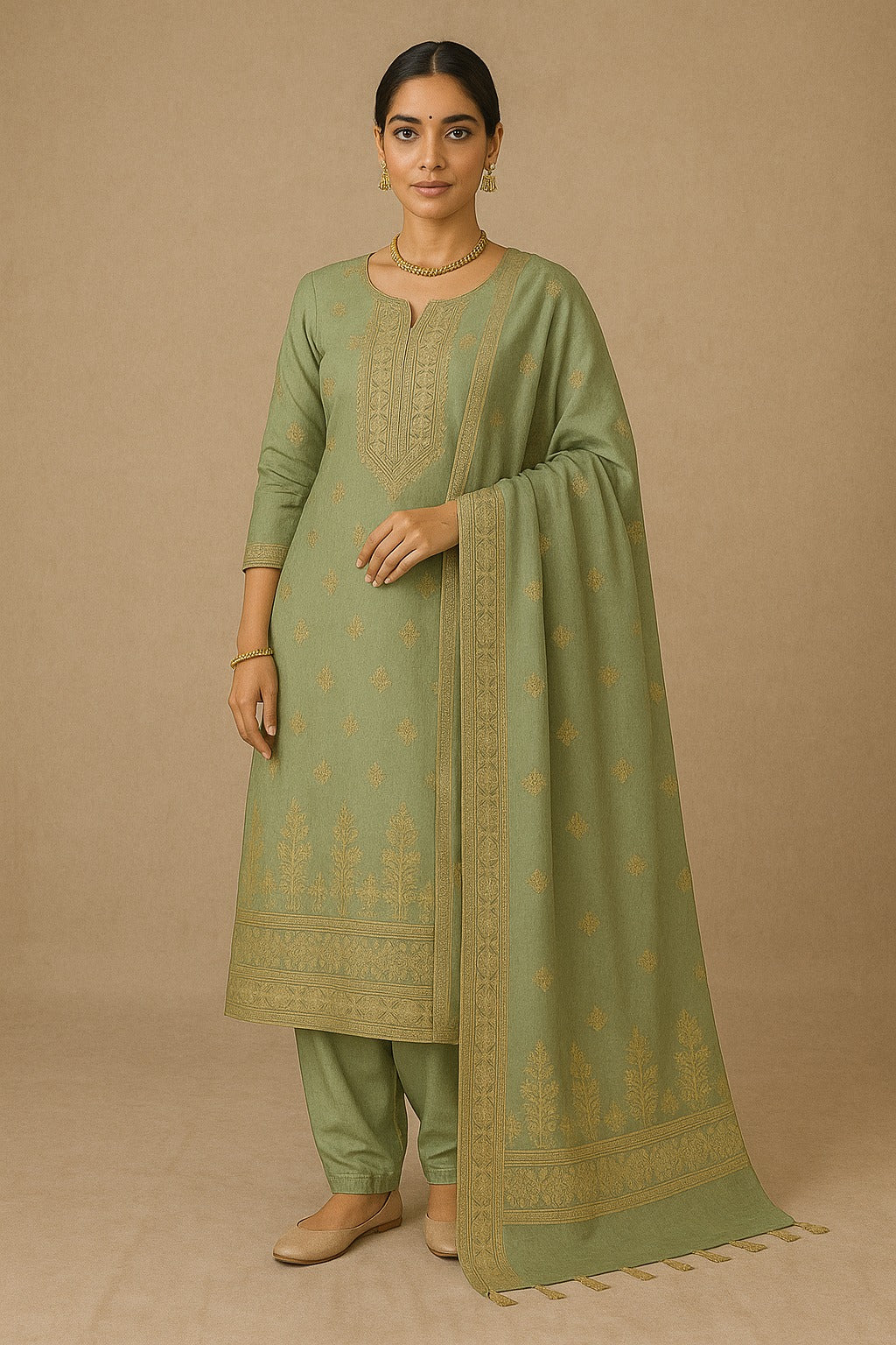 Verdant Green Pure Linen Saree with White Hand Block Prints