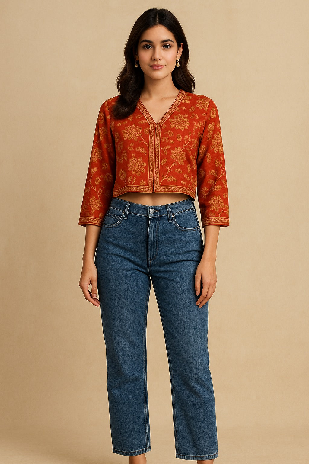 Black and Rust Red Floral Hand Block Printed Cotton Saree